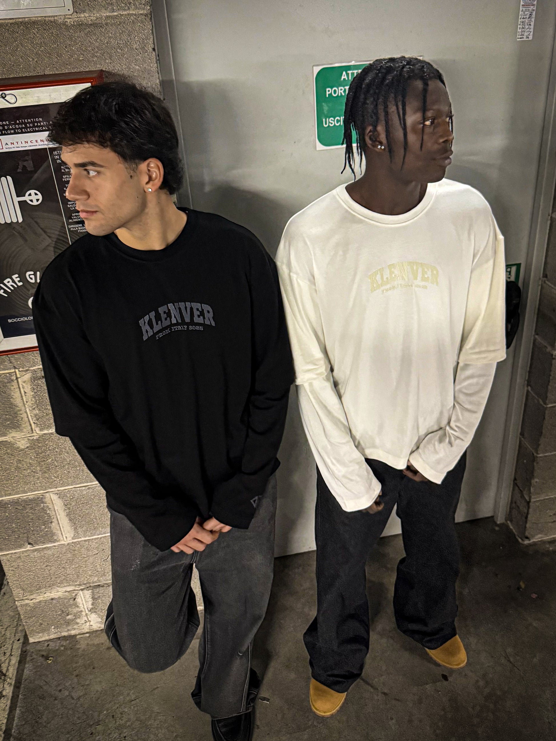 LONGSLEEVE DARK BLACK in 100% cotone premium, 270 gsm, boxy fit, autentica con ispirazione street. Realizzata con tessuto di peso medio-pesante per garantire comfort e struttura. Presenta ricamo frontale e ricamo su manica, bandierina Klenver sul fianco e targhetta Klenver sul retro. Un capo essenziale e distintivo, pensato per un look pulito ma deciso.